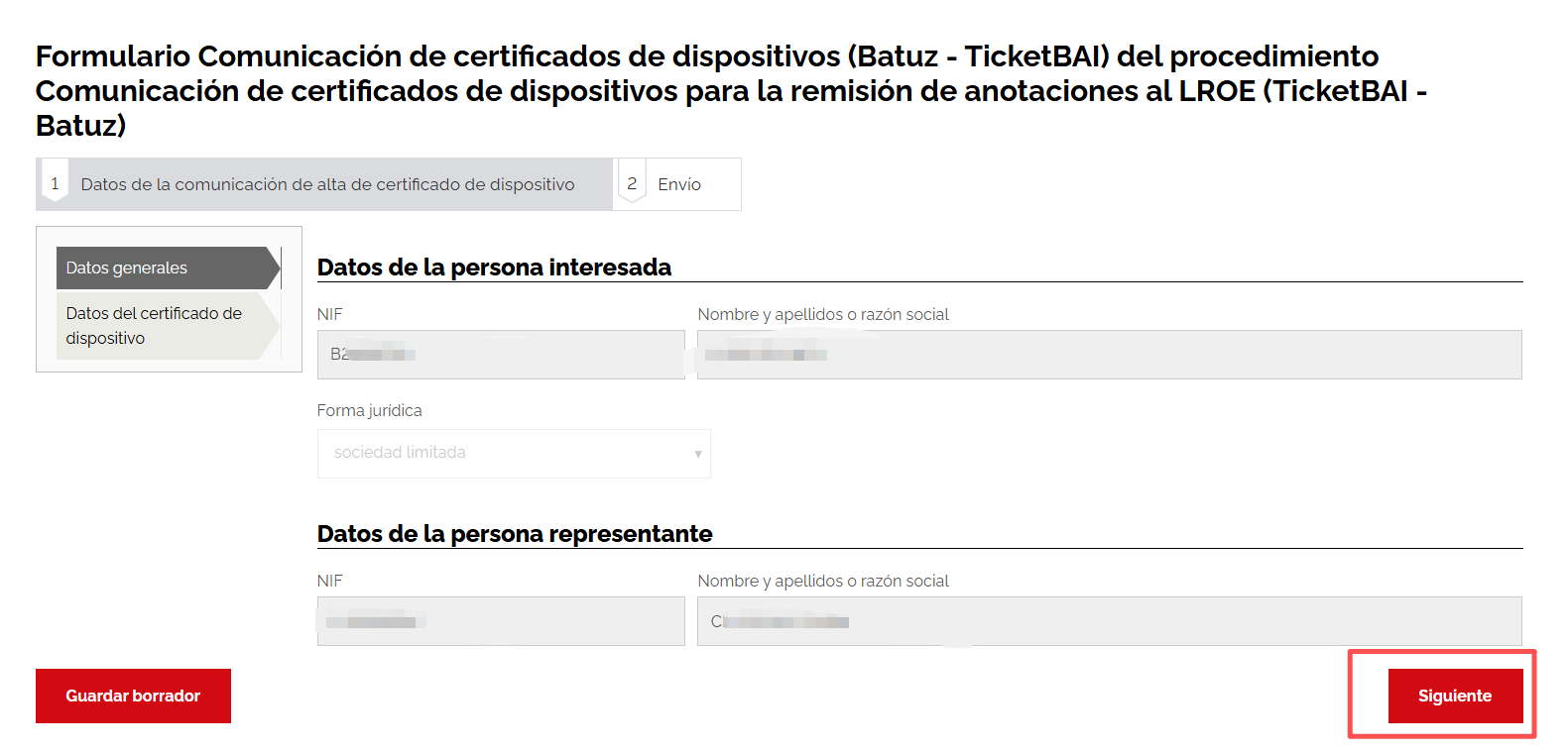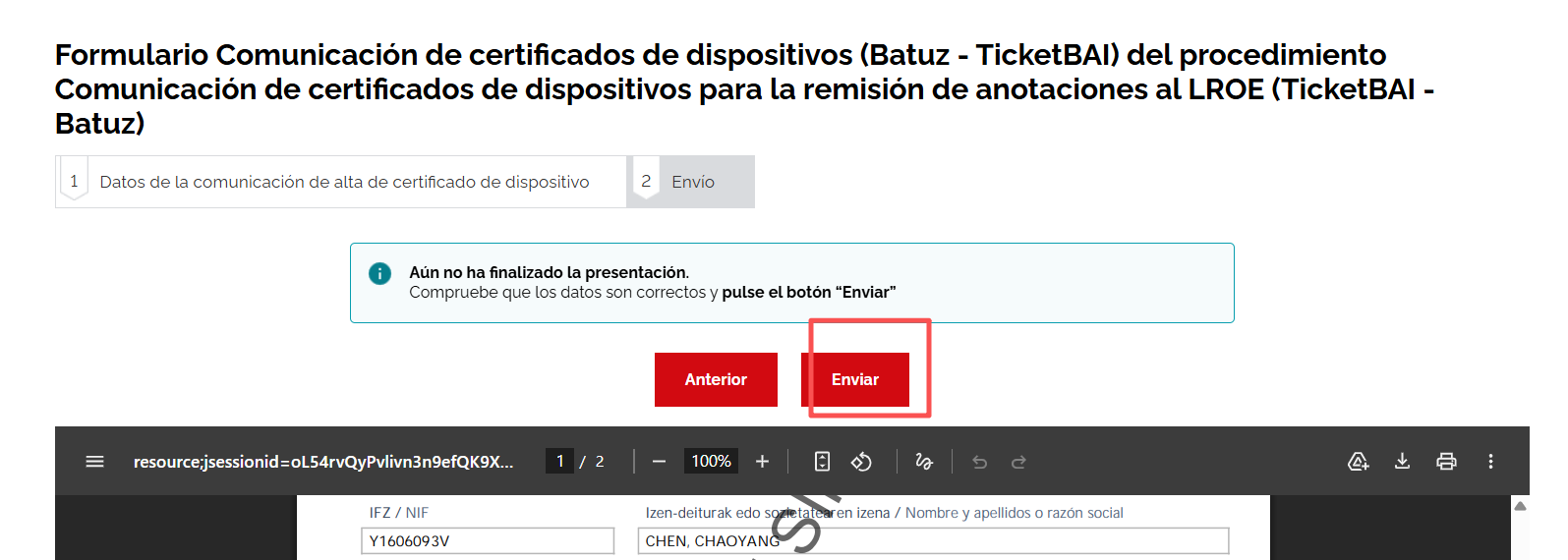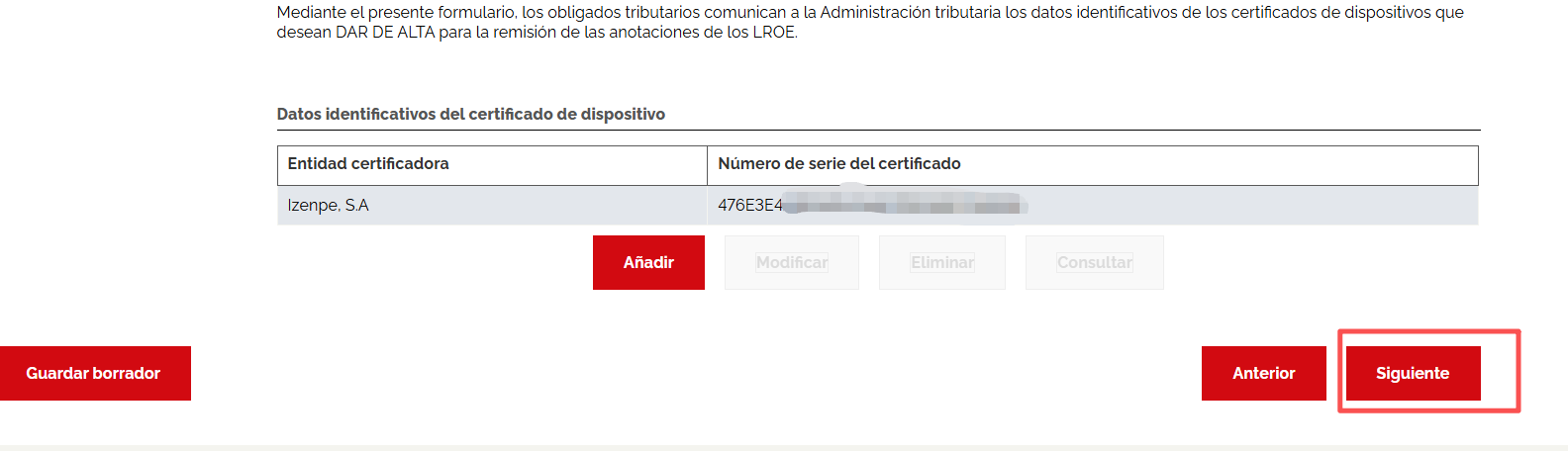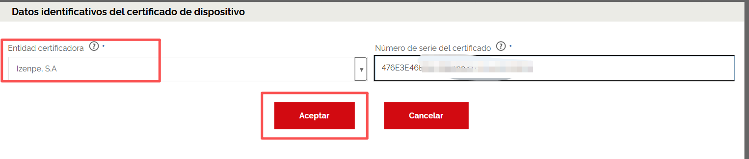 左侧选择 IZENPE SA 电子证书 , 右边输入 返回的 设备序列号